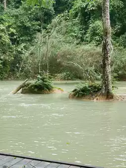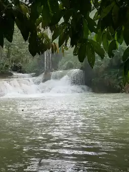 We noticed a sign in our hotel room by the bed that mentioned a trip to Kuang Si Waterfall for 120,000 Kip. When we inquired at the front desk, they told us to wait in the lobby at 11 a.m. the next morning for a pickup.