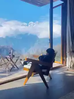 We stayed at Guanshan Yunlan Tingxue, where you can enjoy the sunrise over the mountains right from your room. With underfloor heating and floor-to-ceiling windows, you could happily spend your entire stay indoors. When the weather is nice, you can relax in the courtyard, sip coffee, and gaze at the snow-capped mountains. It's truly hard to leave.
