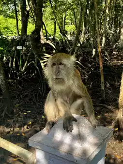The park itself is beautifully maintained, with wooden boardwalks leading you through cool, shaded trails beneath tall mangrove trees. It’s the perfect place to escape the summer heat, listen to the sounds of nature, and spot wildlife like crabs, birds, and dragonflies. But the highlight for many—especially families—is the unexpected and up-close monkey encounters that turn an ordinary walk into a memorable summer adventure.