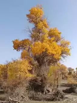 Starting from Korla, after crossing the barren Gobi and a 3-hour bumpy ride—the vitality of the Populus euphratica forest bursts like a visual nuclear explosion! **“Born to live for a thousand years, die but not fall for a thousand years, fall but remain immortal for a thousand years”** is truly not a legend. Rainy days add a magical touch, with golden leaves reflecting the gray sky—absolutely breathtaking!