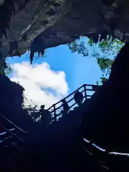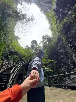 Lighting hours: 19:30-21:30 (arrive early for the magical lighting moment!). The warm yellow lights against the cliff and tiankeng backdrop perfectly recreate the martial arts novel atmosphere!
