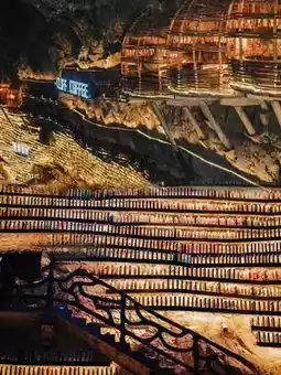 - **Photo ops**: By day, pose with bookshelves and the sky pit backdrop for artsy shots. At night (7:30–9:30 PM), warm lights contrast with the pit and starry sky—silhouette photos on the plank walk are epic!