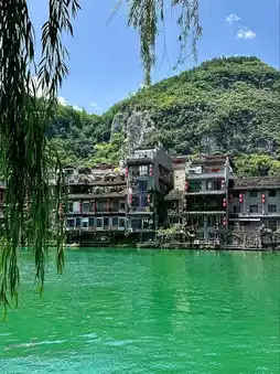 The Wuyang River is a scenic river in Guizhou Province, China, best known for flowing through the ancient town of Zhenyuan Old City. Its most iconic feature is its emerald-green water winding between steep karst mountains, creating picture-perfect reflections of cliffs, caves, forests, and ancient bridges.