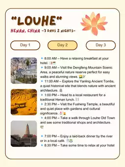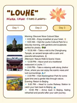 πΉ 8:30 AM β Take a high-speed train to Louhe (around 4-5 hours) or fly to Zhengzhou and take a train to Louhe (about 1.5 hours). πβοΈ
