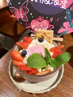 A must-order dessert for birthdays! Vanilla ice cream is super milky, served with fresh strawberries and mango, crispy + cream multiple taste, great satisfaction ~