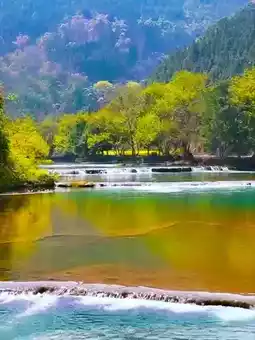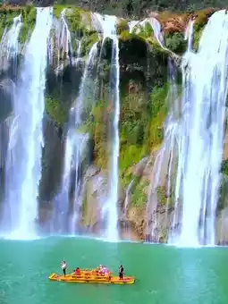 With abundant water in autumn, the ten-level waterfall cluster is magnificent. Standing at the foot of the falls, feeling the mist and thunderous roar, all worries are swept away! Rainbows frequently appear around the falls.