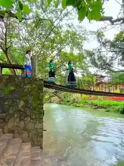 Ride a bamboo raft through clear waters, with ancient banyan trees shading both banks, and the ethereal singing of Bouyei girls. Walking along the river, you’ll encounter seven waterfalls and can even operate waterwheels yourself, making the experience fully immersive!
