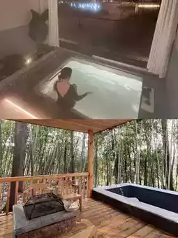 About 2h drive; private hot springs + pet-friendly + fireworks + barbecue, not real hot springs