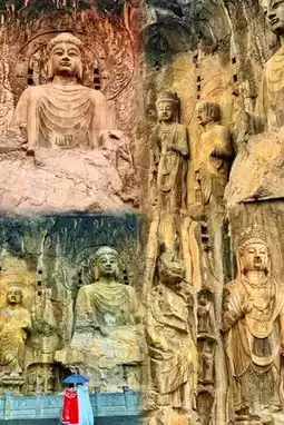 📍East Hill Grottoes: Facing the West Hill Grottoes across the river, there are relatively fewer statues, mainly Tang Dynasty Buddha niches, and the environment is quiet and serene. The Leigutai Site Museum has a rich collection of exhibits. Kanjing Temple has twenty-nine Patriarch relief Arhats carved during Wu Zetian's reign. The Worship Platform offers a panoramic view of the Lushena Buddha and the Longmen scenery.
