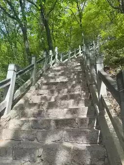 Starting from the foot of the mountain, follow the winding path with lush green trees providing shade. The air is fresh and rich in negative ions—every breath feels invigorating. During the climb, you'll pass several viewing platforms where you can pause to admire the magnificent scenery. The distant mountains stretch endlessly, shrouded in clouds and mist, like a traditional Chinese ink painting.