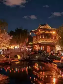 The pagoda is bathed in golden light, with ancient-style lantern walls on both sides creating a great vibe~📸 Shooting from a distance instantly makes you the star of a historical drama! (ps: Open Tuesday to Sunday 19:00-22:00)