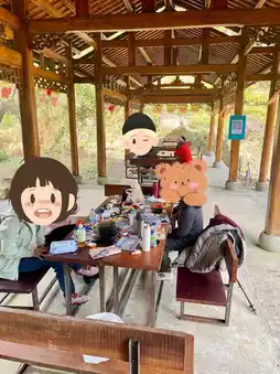 🥖As a foodie, I can't go anywhere without food. As shown in the last three pictures, there is a Shequan Teahouse about 25 minutes' walk from the entrance. There is a long corridor at the entrance. We brought our own small gas stove to make tea, eat snacks, and play cards. Since there was no one else there, we took over three large tables. It was very relaxing. 😌