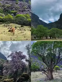 Gently embraced by mountains, a winding stream flows through. From the end of April to the beginning of May each year, this place is a "divine territory" cherished by locals. If you're lucky, you might even meet a grandmother in ethnic clothing, whose smile is warmer than the sun.