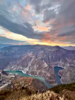Around Kunming: Colorado Grand Canyon·Breathtaking Sunset After the Rain|||The Pudu River Grand Canyon after rain is absolutely stunning!! The 1,600-meter vertical drop chasm is shrouded in mist, like a scene from an epic fantasy drama🌫️! The river, carrying silt, flows quietly through the canyon. Wild azaleas sway in the breeze, moss glows emerald green after soaking up the rain, and no phone camera can capture its awe-inspiring beauty😭!