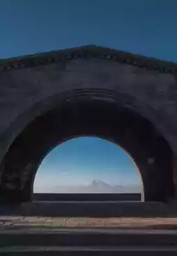 Architects Rafael Israelyan and road builders discovered this spot’s view of Ararat during construction and decided to erect this monument. The 5-meter-high arch is made of basalt.
