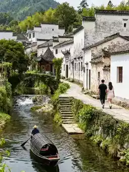 Wake at 6 AM and walk through the village shrouded in morning mist. White walls and black tiles appear and disappear in the fog, like a fairyland. Climb the nearby "Viewing Platform" to overlook the entire village, where mist, ancient houses, and creek form a stunning picture. Capture romantic moments here with your loved one. In the morning, enjoy a "black-sailed boat" ride together, drifting slowly on the creek, listening to the paddle’s splash—relaxing and romantic.