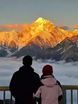 Early morning, head to "Xuebaoding Viewing Platform" to watch the sunrise over the snow-capped peaks. When the first sunlight touches the mountain top, the entire mountain glows golden, like a fairyland. Hike nearby trails in the morning to experience the majestic snow mountains up close, then return in the afternoon.