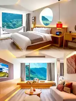 The public areas really get young people! There’s an infinity pool that looks like a gem embedded in the forest, with mountain views overhead while swimming. The lobby has a reading area, a tea corner, and even a play area for kids, making it great for families or friends gathering. If you want lively fun, you can sing KTV; if you want quiet, head to the rooftop viewing platform for a 360° unobstructed view of the sea of clouds and sunset.