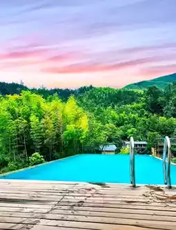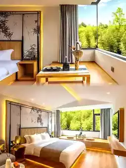 Right in Longwangtan Village of Wugong Mountain, backed by bamboo forests, with a small creek in front. The air is full of refreshing negative oxygen ions. It’s only a 3-minute drive or a 10-minute walk to the Jinding cableway. No need to rush out early in the morning to catch the sunrise, and it’s super convenient to come back down at night. The best part is on foggy days—it feels like living in a fairyland. Occasionally, you can even see cows passing by outside the yard, creating a perfect atmosphere.