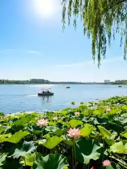 Highlights: China’s largest ring-shaped city lake, with a water area three times that of Hangzhou’s West Lake. In summer, thousands of lotus flowers bloom; in autumn, flocks of migratory birds gather among the reeds. Elders can enjoy a one-hour round-trip boat ride to admire the lake view, children can feed koi fish in the “Lotus Grand View Garden” (5 RMB per pack), and the wooden boardwalk along the shore is perfect for a stroll. At sunset, the lake surface glistens like scattered gold.