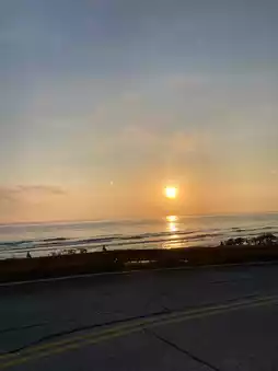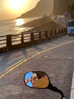 The sea surface was shining with golden light, and even the outline of the mountain became soft. There were not many people at that time, only us sitting on the motorcycle, watching the sunset slowly sink, my heart suddenly felt very calm.