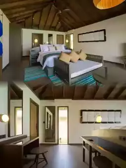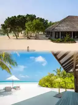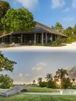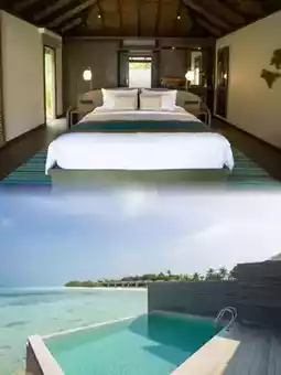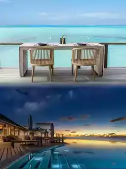 With its unique dual-island design, the resort offers a romantic trailing beach on one end of the pier and a family-friendly paradise on the other, catering to both honeymooners and families with children. Surrounded by pristine white sandy beaches and abundant coral reefs, you can encounter clownfish while snorkeling at any time! Each villa has its own private terrace, offering breathtaking views of the gradient jelly-like ocean right outside your window.
