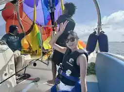 I was afraid of heights and had always kept parasailing in my heart. I wanted to try it but was afraid. Fortunately, my friend was willing to accompany me to face my fear and gave me this parasailing experience as my birthday gift. I was worried that I would cry on the spot the day before, but unexpectedly, the moment I sat on it, the beautiful view came into my eyes as the boat sailed out. At that moment, I was very moved and even choked up. It turned out that all the beauty was so simple. At this moment, all my worries and concerns were gone, and I felt a full coolness blowing through my body. I was very happy to have such an experience. I will try parasailing in different countries again if I have the chance!