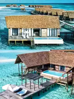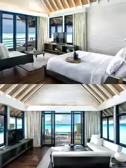 There are no beach houses on this island. There are four types of one-bedroom water houses, which look like dhoni boats. The beach next to the water houses on the island is very large, and the sand on the tail beach has been washed very fine. Everyone who has been here has fallen in love with it.