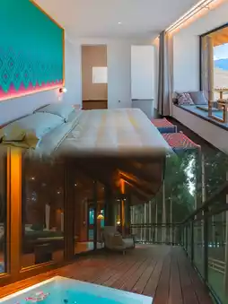 - 7 Courtyard Villas: Arranged in a terraced layout, with two and three-bedroom options, each with a private butler providing afternoon tea, dinner, and breakfast. The villa design preserves traditional village layouts with Yi embroidery elements inside and spacious terraces outside, equipped with massage bathtubs🛁.