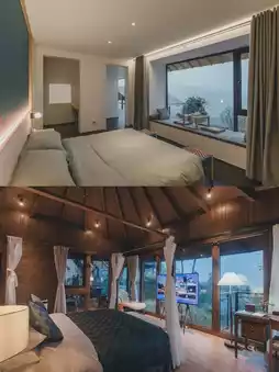 🍃 The treehouse clings to the cliff! Wake up to birdsong in the morning, with floor-to-ceiling windows framing the lush mountains like wallpaper. After rain, clouds cascade past your window, and by evening, the lantern-lit corridor glows warmly—every corner feels like a movie scene!