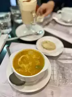 We ordered their seafood pasta, borscht, and Portuguese tart