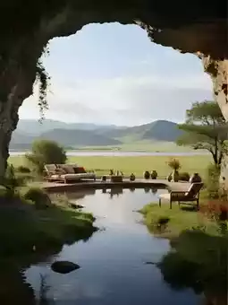 Upon entering the restaurant, you first see a large wine cellar, a spacious sofa area, and a bar. There is ample distance between the tables, with arched glass walls, natural lighting, and a green view.