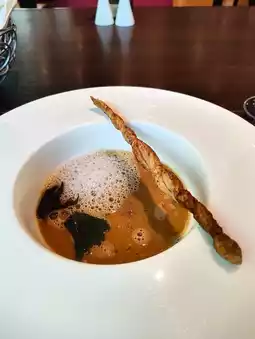 The set menu offers a variety of choices. For the appetizer, I chose 🦞lobster bisque with raw lobster slices, celery, and ginger butter. The waiter pours the lobster bisque in front of the guests, and the flavor is very rich, with finely chopped celery adding a crunchy texture.