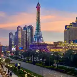 Beautiful sunset, the Eiffel Tower lights up, you can reach Paris in a second