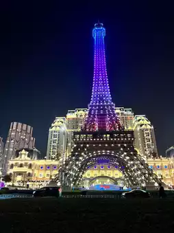 🔺 Eiffel Tower: Although the Eiffel Tower here is a replica, it is also very spectacular. Standing under the tower or taking pictures from a distance, you can appreciate a different kind of beauty.