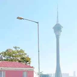 📍 Navigate to Yi Wan Slope Alley, get off the car and be surrounded by beautiful scenery. Cross the road and you can see the super cool Macau Tower.