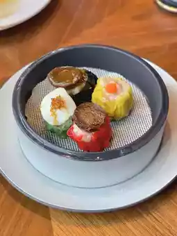 The four-color siu mai with attractive appearance include chewy abalone siu mai, sweet scallop siu mai, tasty Sichuan spicy siu mai, and salty and fragrant red fish roe siu mai🤩 The taste of each one is surprising and delicious! 👍🏻