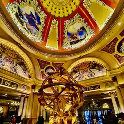 The appearance here is like a magnified corner of Venice, with spires, arch bridges, and the Grand Canal, it is breathtakingly beautiful. As soon as you enter the lobby, it feels like you have traveled back to the Renaissance. According to statistics, there are 22,200 murals here, most of which are from the Venetian school of painting. Looking up at the dome of the lobby, those huge paintings make people feel as if they have traveled back to the Italian Renaissance. Each painting is full of artistic beauty.