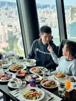 After the exam, we went to Macau to have fun, so that the two brothers could experience eating in a 360-degree revolving restaurant🤭. At an altitude of 330 meters, while slowly rotating, you can enjoy the beautiful scenery of Macau's city without blind spots and slowly enjoy the food