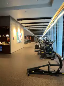 A fitness center with state-of-the-art equipment and an indoor heated pool