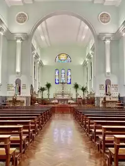 Stepping into the Cathedral of Macau, one is immediately enveloped by an aura of solemnity and tranquility. The gray-white stone walls, simple yet imposing, exude a sense of historical depth through their understated lines. The steps leading up to the grand entrance seem to guide one towards a sanctuary of the soul, and as you ascend, your mind becomes clearer. Inside, the spacious and lofty interior features an arched ceiling that draws the eye towards the altar, resembling hands clasped in prayer. Soft light pours through the stained glass windows, casting colorful shadows that dance on the stone walls, as if narrating tales of faith. Every detail is imbued with artistic charm, with wooden pews neatly arranged, awaiting the prayers and reflections of pilgrims. Standing in the plaza outside the cathedral, one's gaze extends beyond the sky, where the silhouette of the bell tower becomes more distinct against the blue backdrop, as if time has stood still. The Cathedral of Macau, a confluence of history and faith, not only showcases architectural beauty but also imparts a sense of inner peace and serenity.