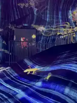 The venue also features various installations for parents and children to enjoy together, such as a light and shadow trampoline where everyone can jump along with projected patterns. There's also a slide where children can follow the light beams as they slide down.
