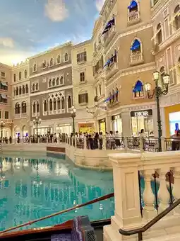 Macau has a lot of hotels, and each one is so large that you can easily lose track of time while exploring them. Each hotel has a unique concept, making the exploration even more enjoyable. Among them, the Venetian Hotel is designed with the theme of Venice, Italy. You can even ride an indoor gondola, and the place is so beautifully made that it looks great in photos.