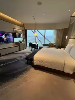 The intelligent central control system in the guest room is endowed with the future prophecy of Fahrenheit 451 - Cortázar's short story collection turned into an electronic ink screen bedside reading, touch the iPad to switch to "Nolan Dark Mode", 270° ring screen automatically plays Tarkovsky's "Stealth" 4K restoration.