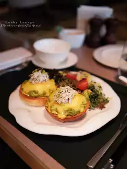 Another option is to go to the Lobby Lounge—the Benedict + Chicken Porridge is highly recommended