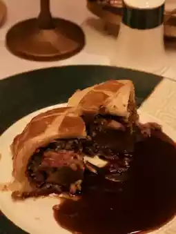I replaced the steak with soft-boiled abalone and added mushroom puree with foie gras sauce.