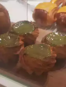 A croissant with lava cheese sauce and a tempting caramel crust.