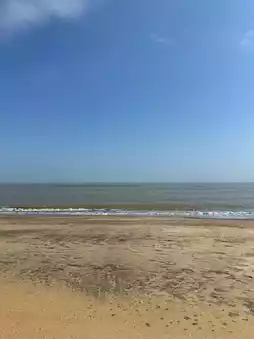 The coconut trees beside the beach sway in the wind, providing a cool place. Here, you can leisurely bask in the sun, build sand castles, and engage in water activities.