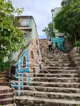 Hidden in the scenic alley of the old town of Taipa, it is a quiet alley full of Portuguese style💜 Traditional Portuguese architecture is preserved on both sides, goose yellow walls with green shutters, extremely exotic. There are several small and creative shops and cafes in the alley ☕️, and the mottled walls are dotted with creative murals, attracting tourists to stop and take pictures. Here you can feel the historical charm of Macau and experience the trendy cultural and creative atmosphere🥳 It is an excellent place to get away from the hustle and bustle and enjoy the slow life of Taipa. 👍