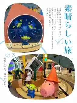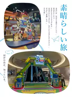 While walking, you can enjoy the giant Toy Story photo spot, it's like watching a 3D movie😍